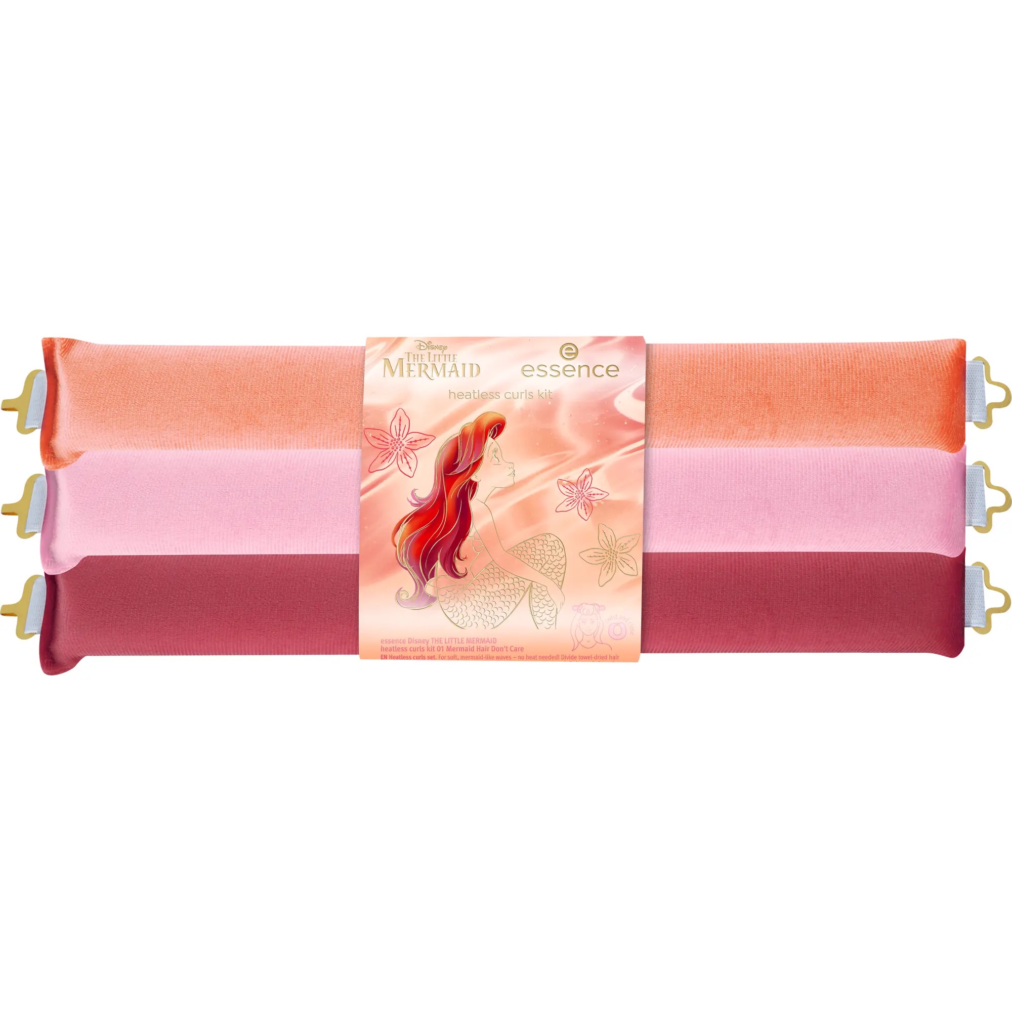 Svegliati con i capelli ondulati senza sforzo con il kit di ricci senza calore essence ispirato a Disney The Little Mermaid 01 Mermaid Hair Don’t Care. Questo coloratissimo set in arancione, rosa e rosso ti permette di ricreare da sola le chiome da sogno di Ariel – senza bisogno di calore. Progettato come alternativa delicata per creare onde morbide e fluide, è adatto a tutti i tipi di capelli. La struttura flessibile consente uno stile personalizzato, mentre il tessuto morbido assicura comfort per tutta la notte. Ottieni capelli meravigliosi come quelli di una sirena: ti basta attorcigliare, dormire e svelare le tue onde!