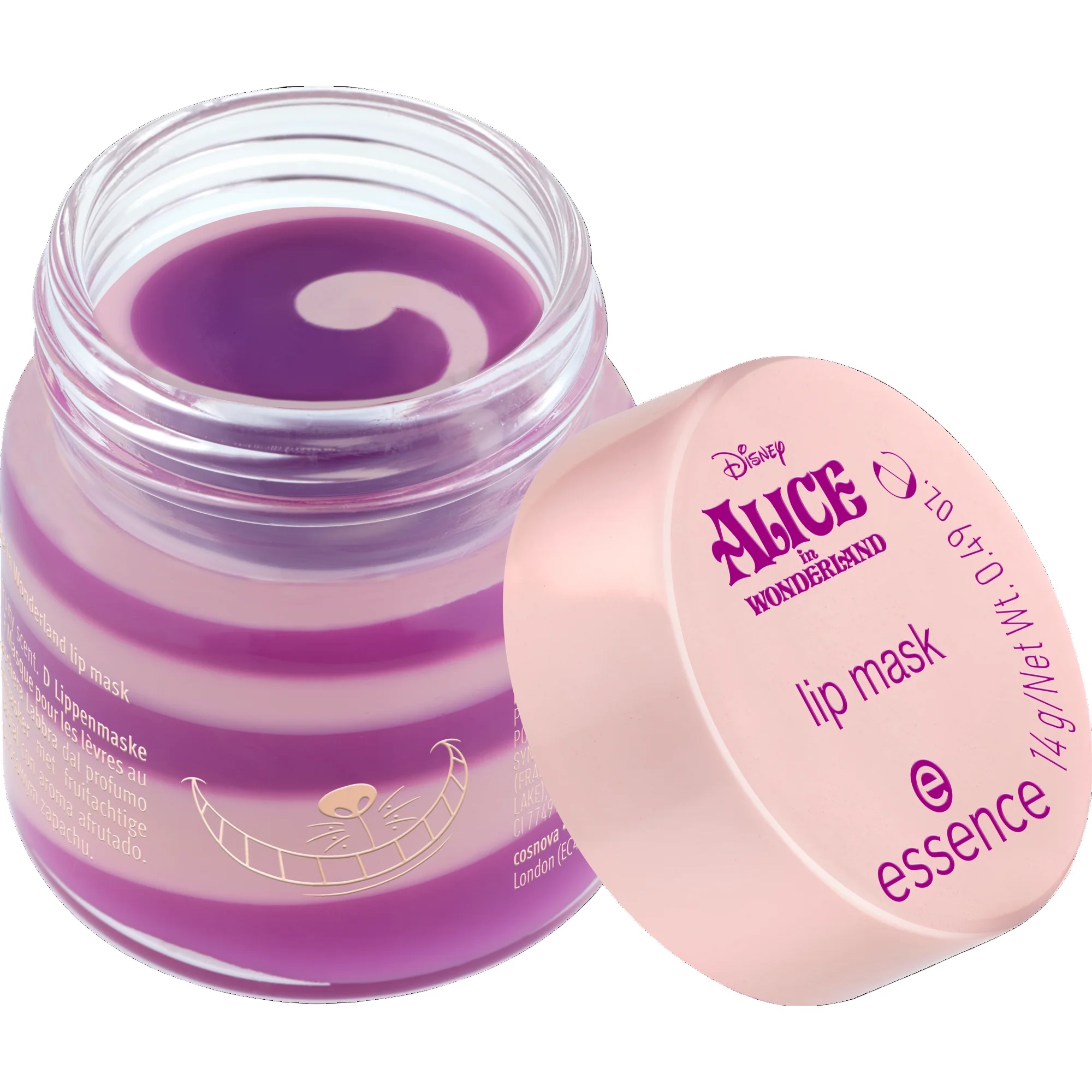 Regala alle tue labbra una coccola da sogno con la maschera labbra essence ispirata a Disney Alice nel Paese delle Meraviglie 01 Swirlin’ Around! Questa maschera labbra nutriente presenta una texture giocosa a vortice viola-rosato ispirata all’unico e inimitabile Stregatto. La ricca formula cremosa coccola le labbra, mentre il profumo fruttato aggiunge un tocco divertente alla tua routine – perfetta per un momento di cura, in qualsiasi momento.